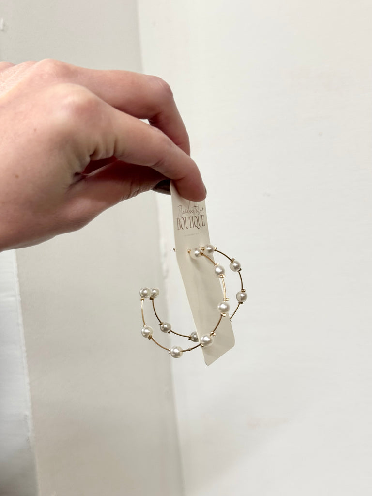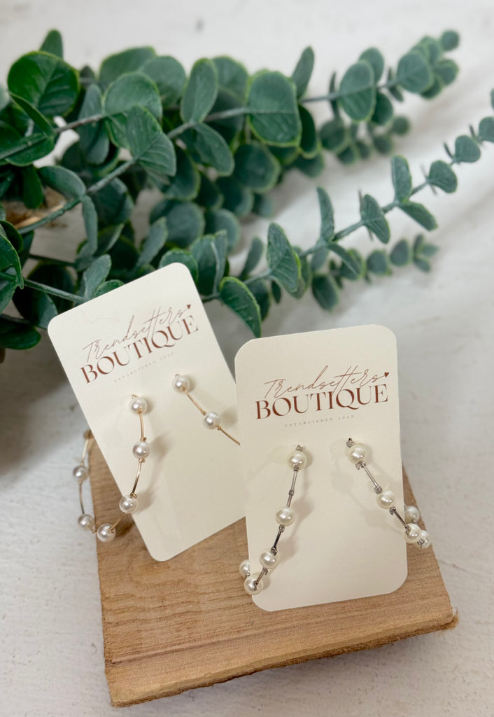 Very lightweight open back hoops with pearl detail. Comes in two color options; silver and gold.