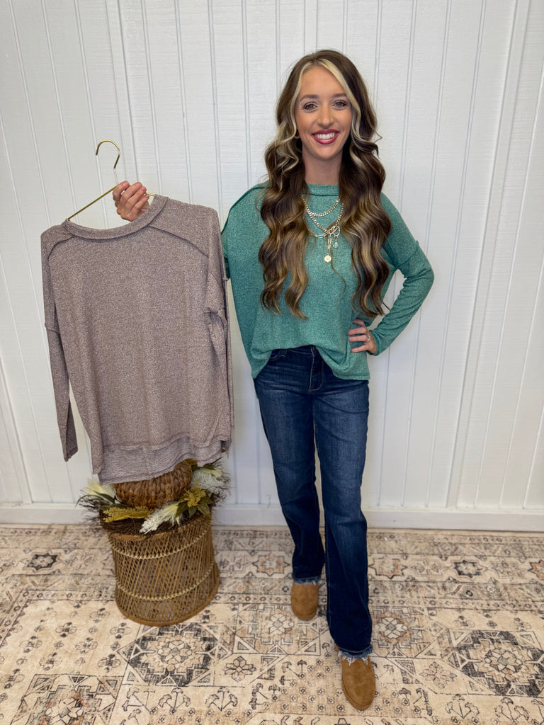Buttery soft top that’s perfect for all occasions. Great to dress up or down. Model is wearing the size s/m. Comes in two color options. 95% polyester, 5% spandex