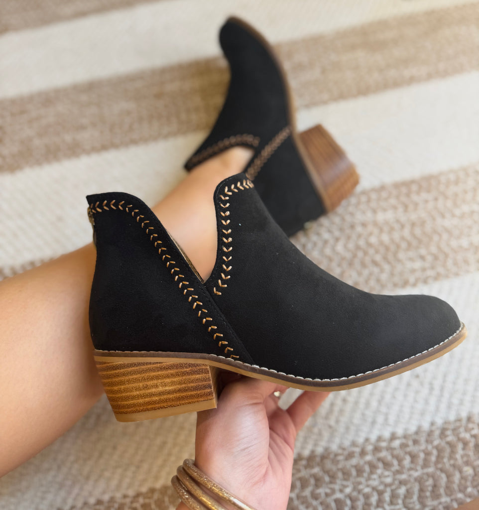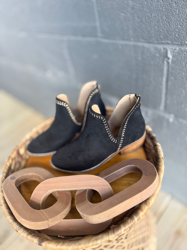 Corkys Footwear. Easy back zipper for on the go! True to size fit, if half size we recommend sizing up for a more comfortable fit. Black faux suede to match any and every outfit.