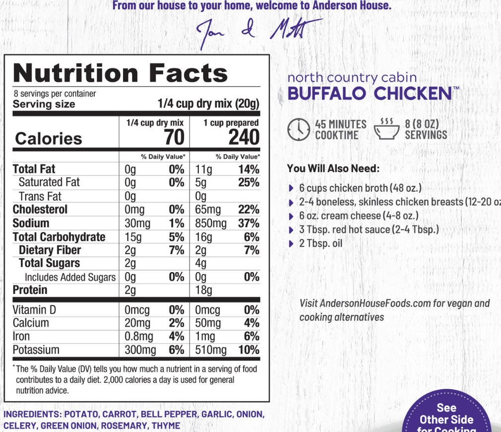 45 minute cook time. 8 (8oz) servings. Instructions and posted. Easy clean up and delicious.
