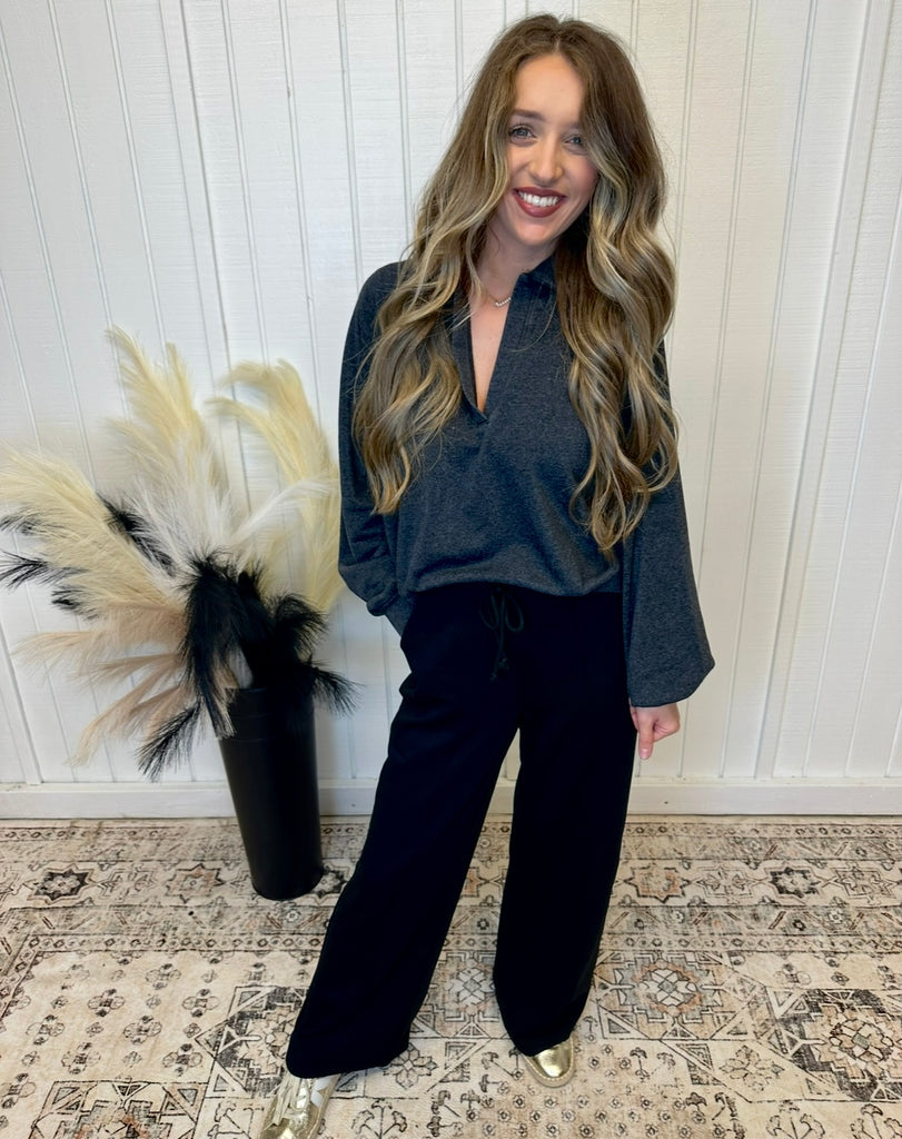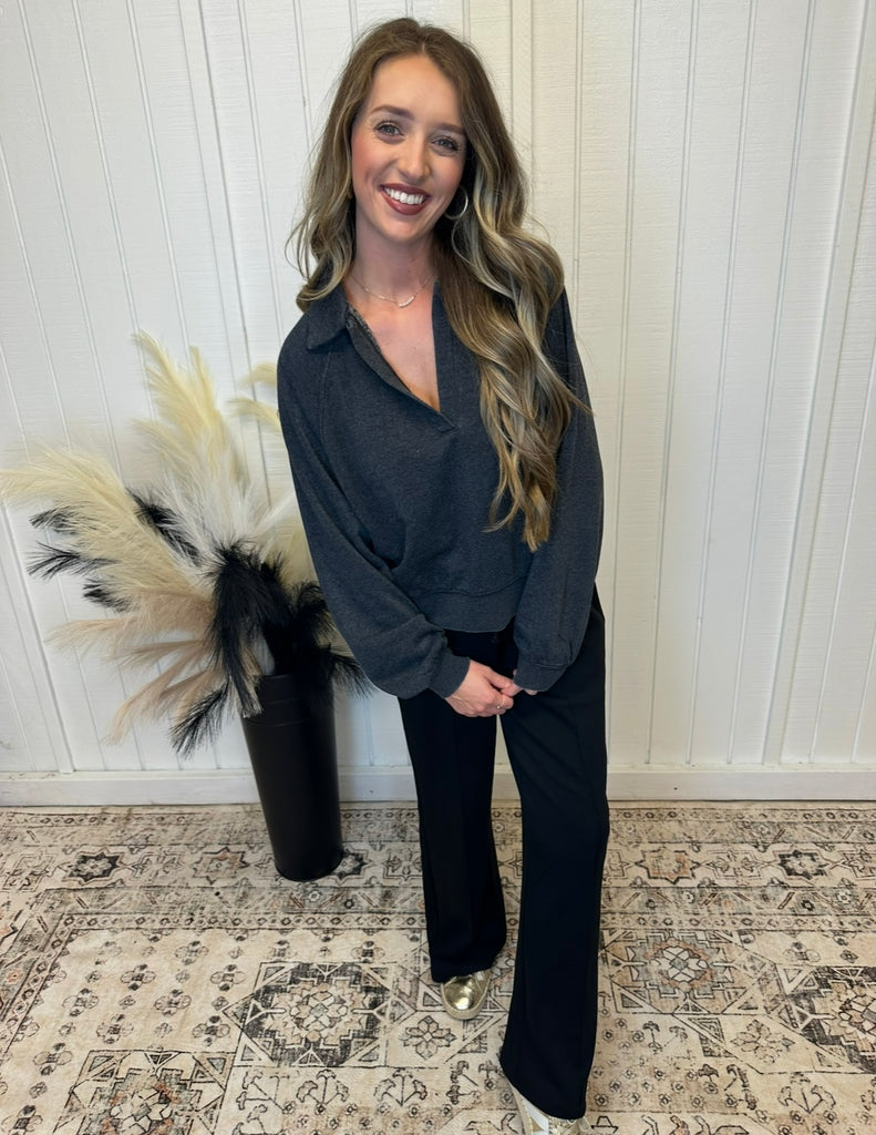 Charcoal black pullover. Oversized fit with inside sherpa material. 51% cotton, 49% polyester