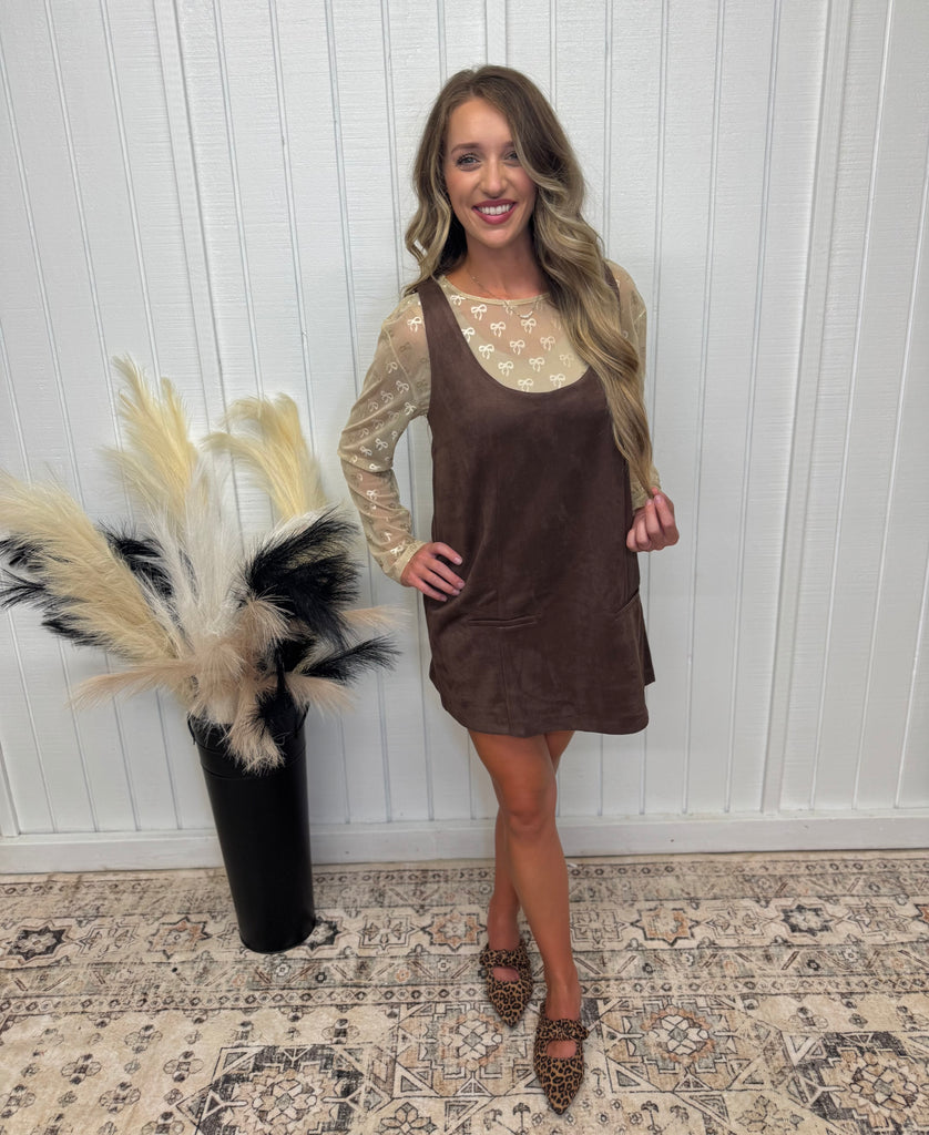 Mocha velvet dress. True to size fit. So cute and stylish with an unlimited ways to style it. Self: 95% polyester, 5% spandex Lining: 100% polyester