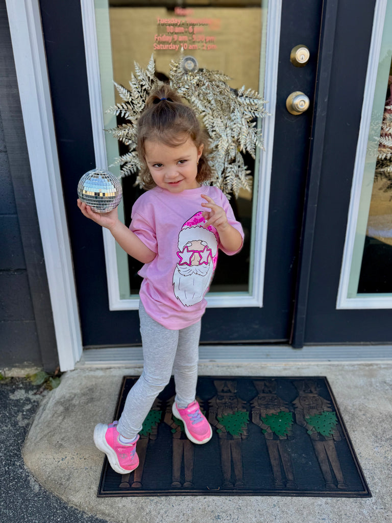 How cute are these matching disco Santa graphic tees? Adult in heather grey and kid in light pink. 50% polyester, 25% rayon, 25% cotton