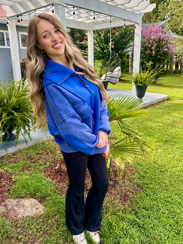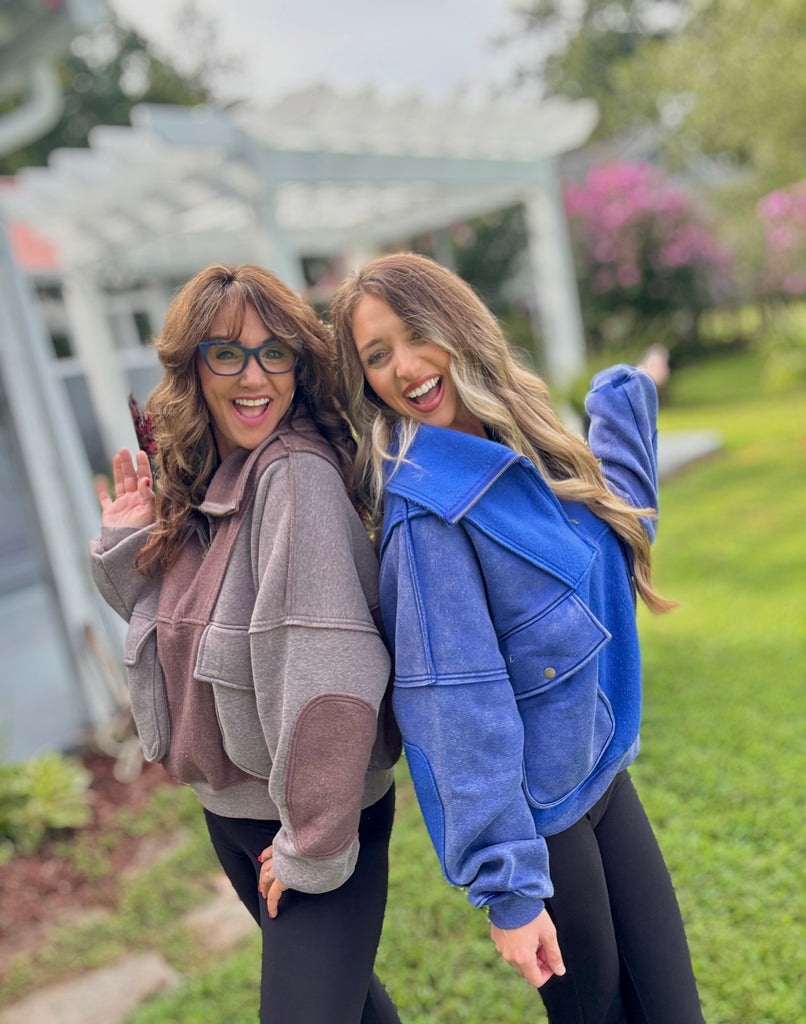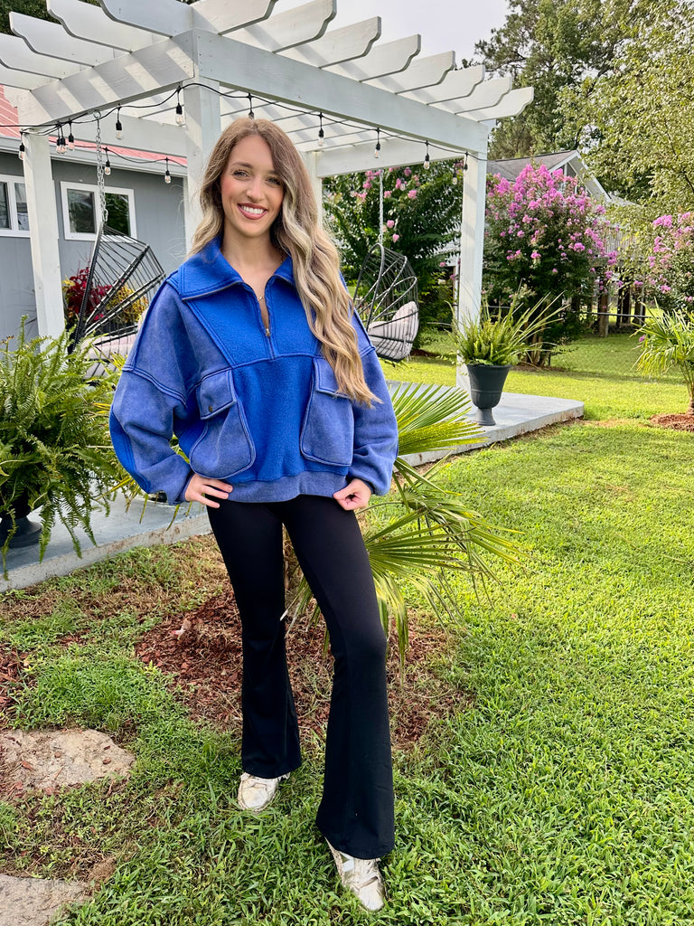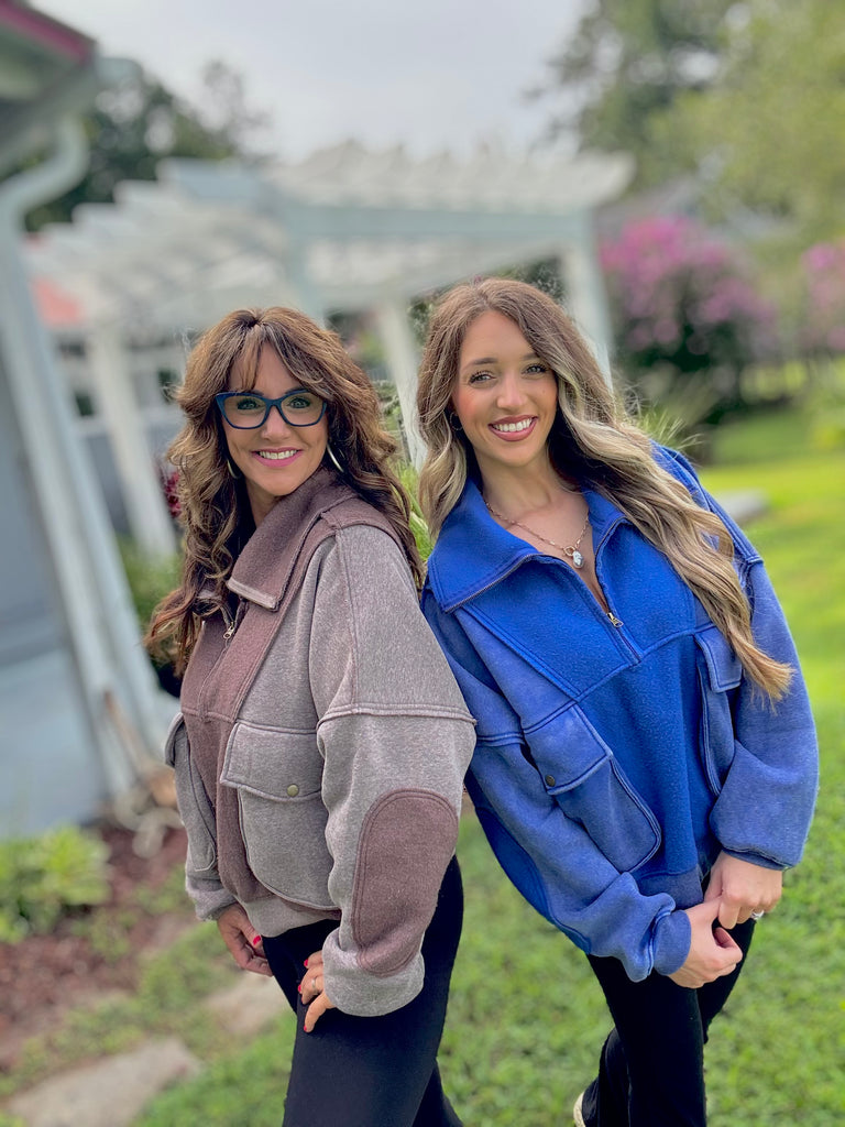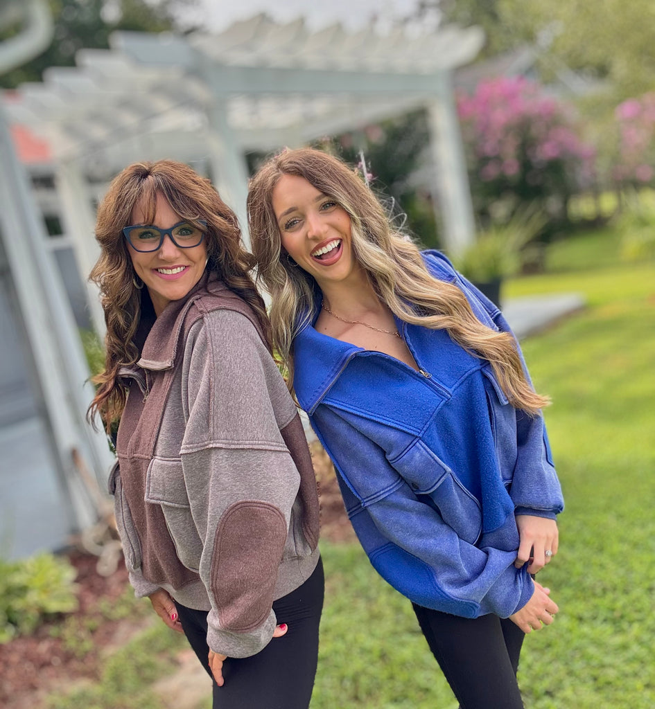 A new trend that’s so cute and very comfortable. Mineral washed oversized sweat fleece half zip sweatshirt. Oversized fit, can size down. 70% polyester, 30% cotton. Comes in two color options blue and mocha.