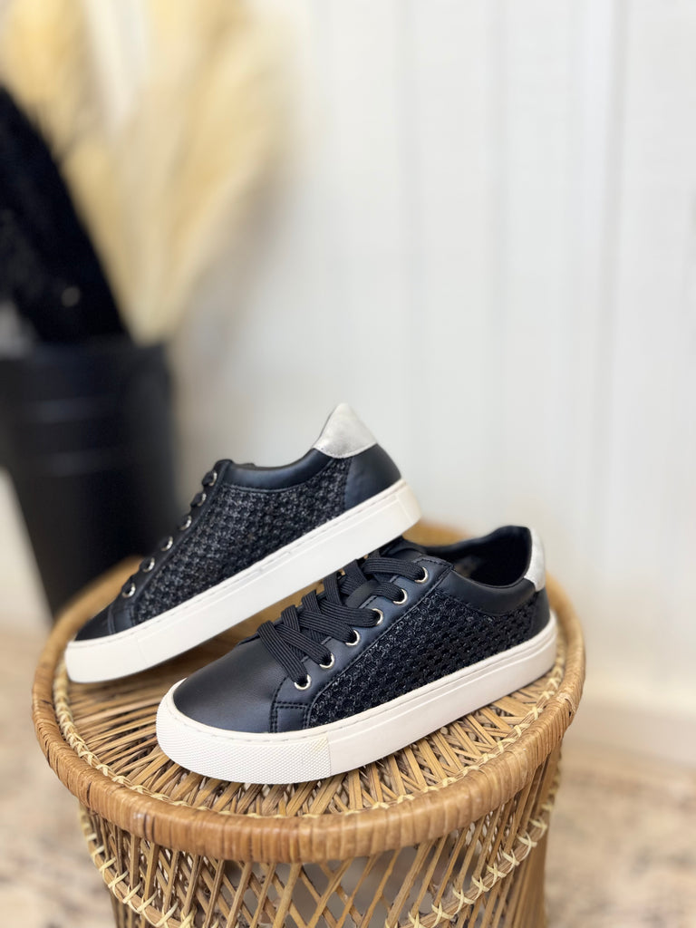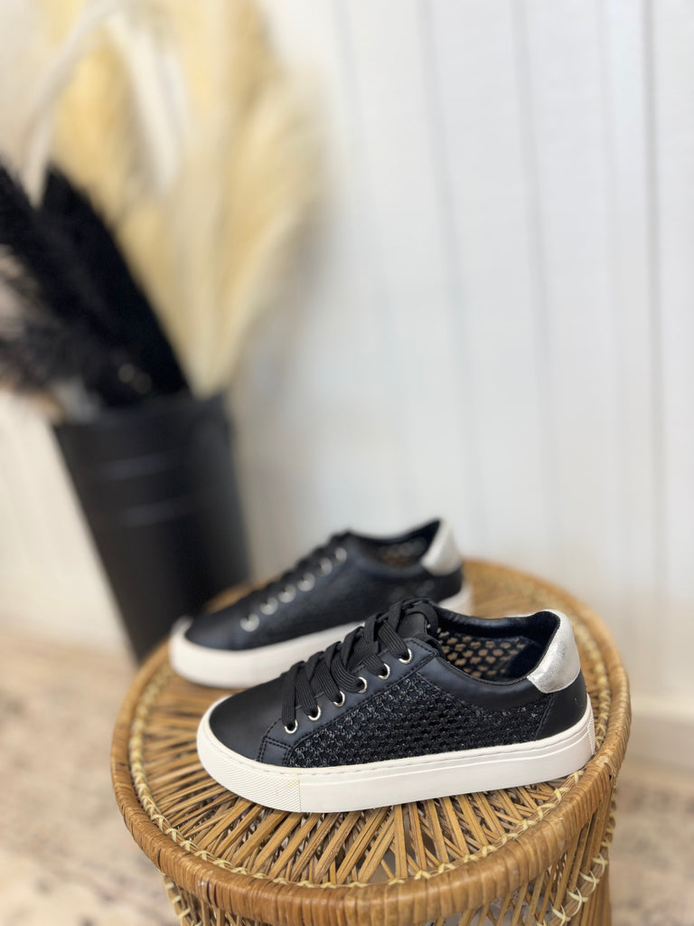 Black Corkys sneakers with air flow sides. Memory foam padding with metallic silver back detail. True to size fit, if half size go up a size.