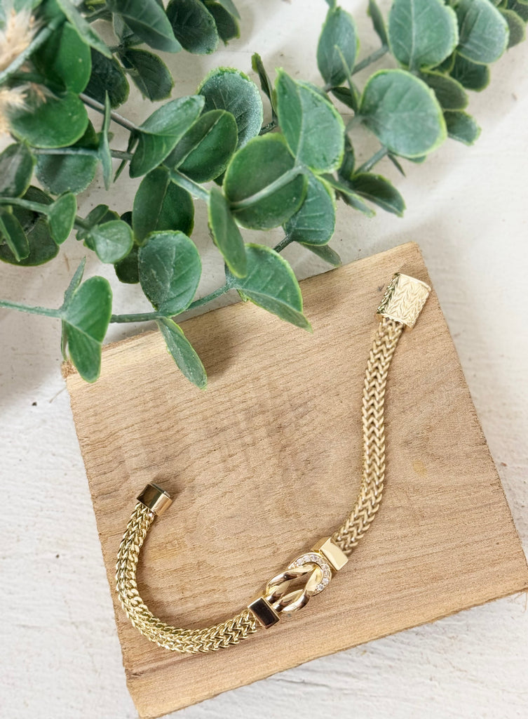 Gold magnetic chain and rhinestone bracelet.