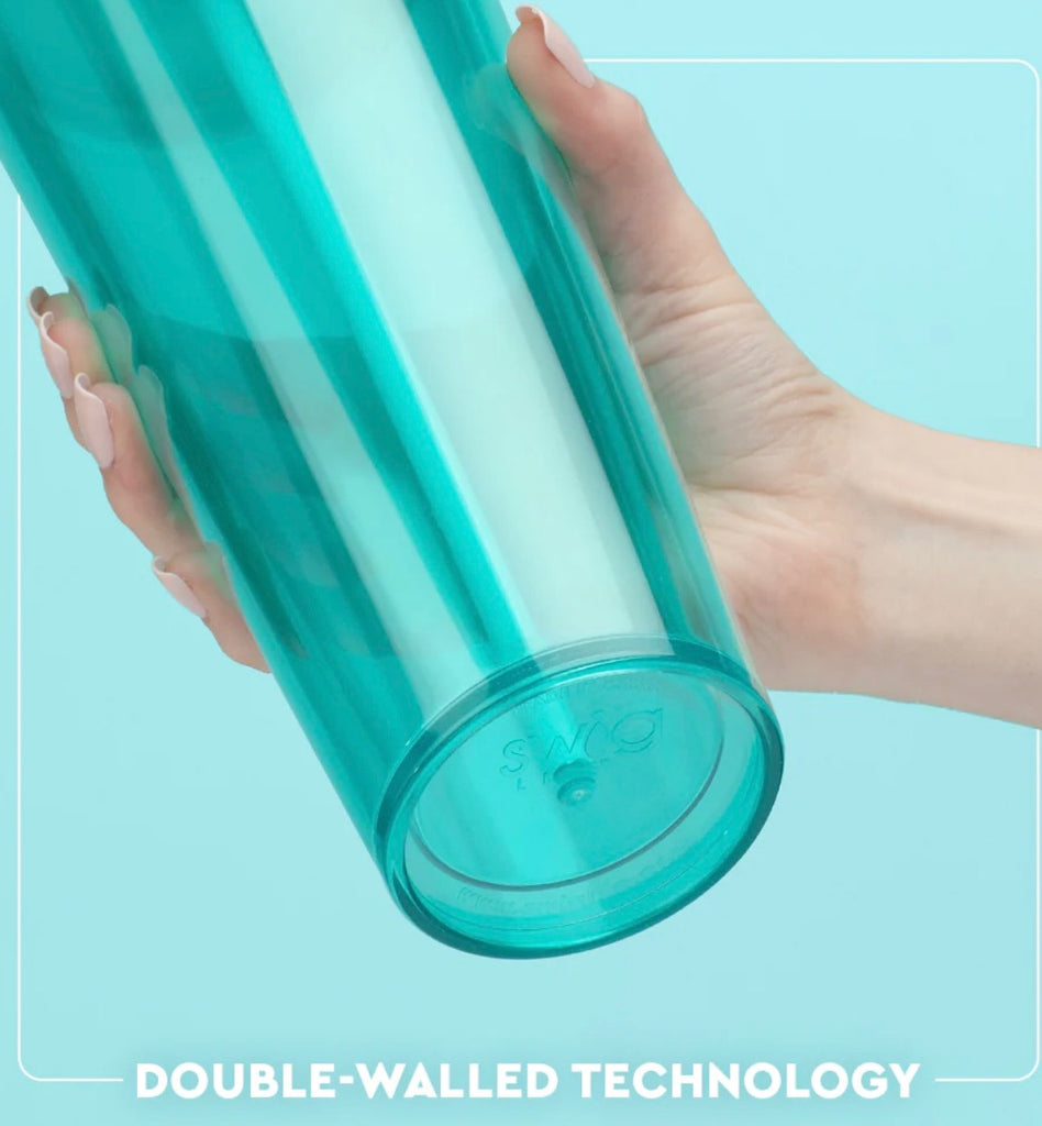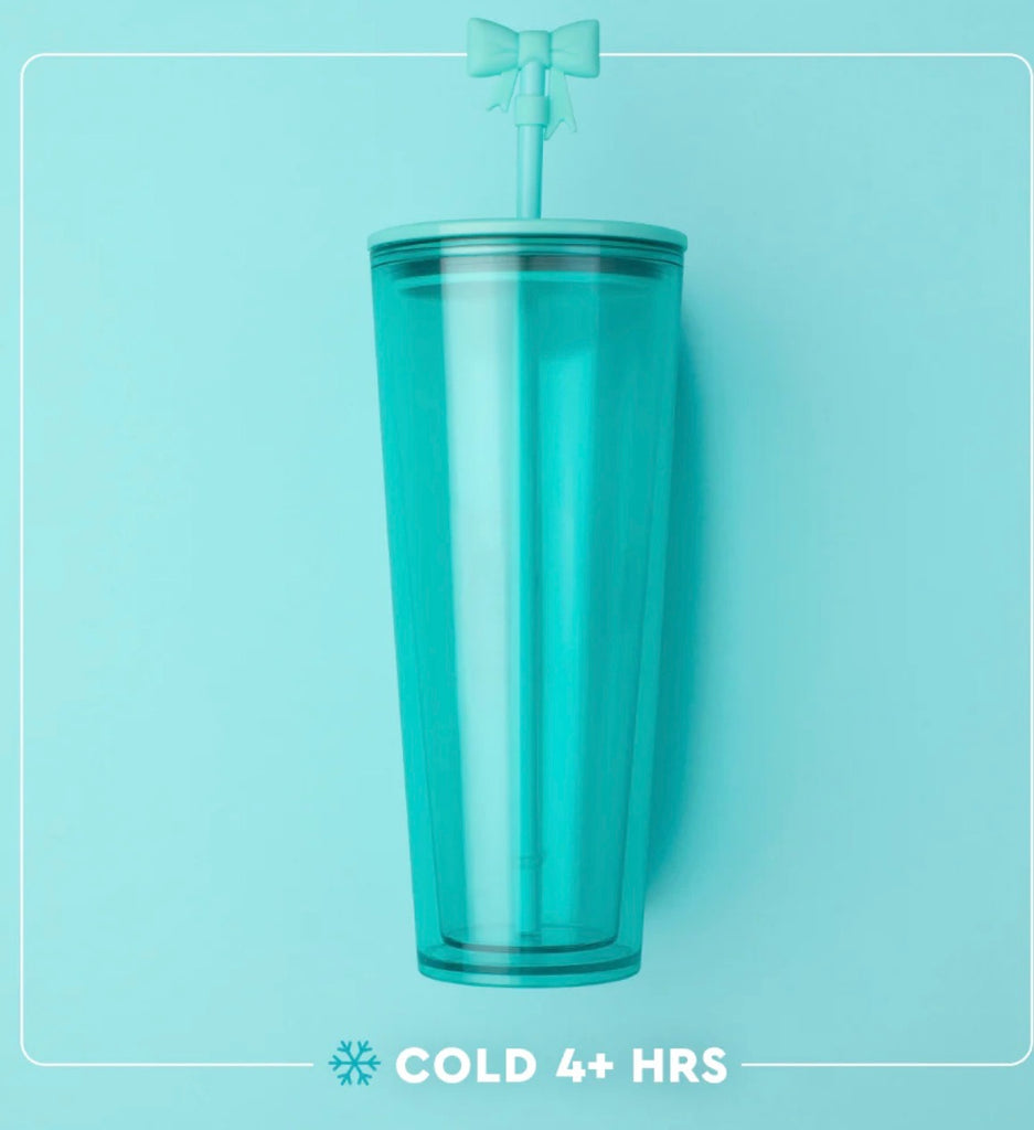 Double walled plastic tumbler. 24oz. Cold 4+ hours.